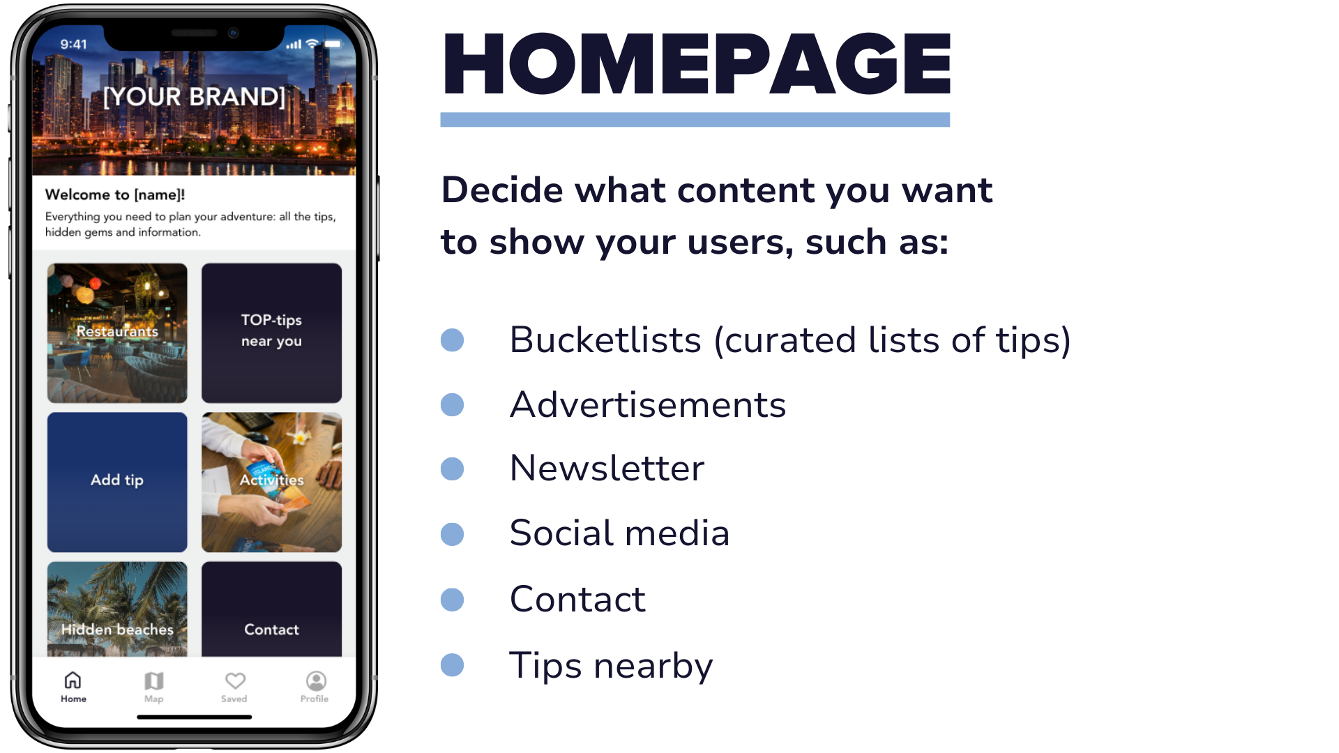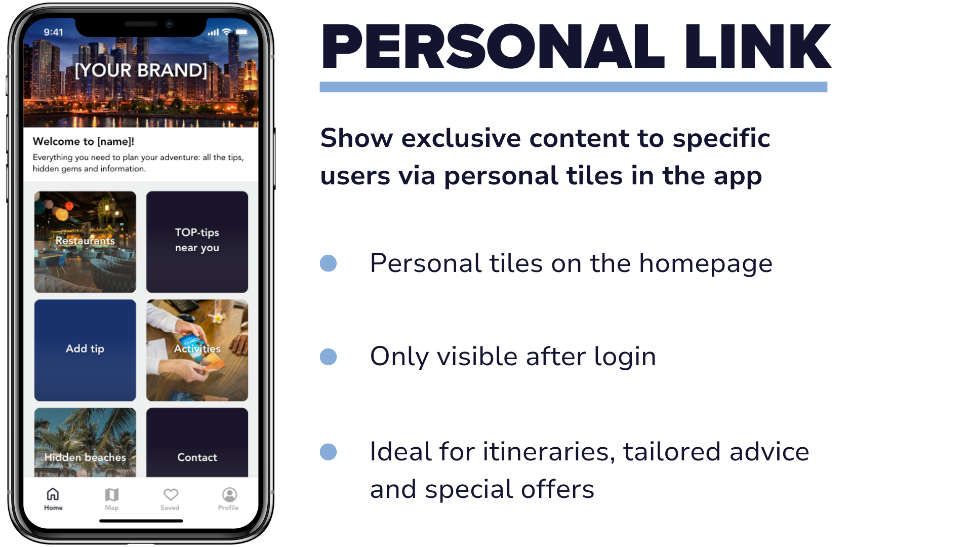 Your own app, filled with travel tips for your audience—in your own branding.